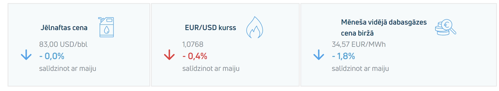 - Naftas cena nemainijās un jūnijā tā bija 83,00 USD/bbl.