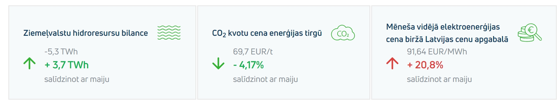 - Vēja, hidro un saules enerģijas spēkstacijās kopumā jūnijā Latvijā tika iegūtas 145 GWh zaļās elektroenerģijas. Tas ir būtiski mazāk kā maijā (400 GWh).